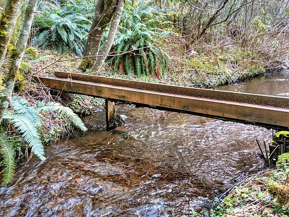 Light and bright Hackett creek front home on over an acre of land. Three bedrooms, two baths with skylights, tons of windows, creekside deck with hot tub and natural setting with huge trees and privacy. Enjoy the stars and Hackett Creek after a day on the slopes! Vaulted ceilings and a toe warming wood stove with an open floor plan is a fantastic full time home or vacation getaway. Attached two car garage and outbuilding. Close to skiing, hiking and Sandy Ridge Bike Park. Only one hour PDX!