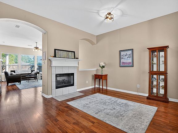 Stunning double-sided fireplaceHigh ceilingsBrick on three sidesAbundant natural lightStainless steel appliancesSpacious family roomCovered patio