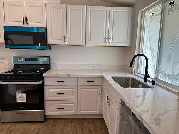 Welcome to The Pines Mobile Estates, one of Stockton's most sought-after 55+ communities, located just across the street from Kaiser Hospital. This beautifully maintained neighborhood is known for its quiet atmosphere, pristine grounds, and friendly sense of community. This spacious 3-bedroom, 2-bath home offers 1,920 sq. ft. of completely remodeled living spacemove-in ready! Step inside to find modern upgrades throughout, including new appliances, new flooring, a brand-new roof, a fence in the backyard and even the driveway is freshly painted. The open floor plan features custom kitchen cabinetry, quartz countertops, a butcher block island, and new appliances. The high 9.5-foot ceilings showcase the abundant natural light creating an open and inviting living space. The bathrooms are completely renovated with new sinks, tubs/showers, flooring, and vanity's. The home is finished with T-111 siding and skirting, freshly painted inside and out for a clean and updated look. Additional highlights include a covered patio, covered carport, and ample room for comfortable living. Perfectly situated right across from the swimming pool and clubhouse, you'll enjoy easy access to all of the park's amenities while still having your own private retreat.