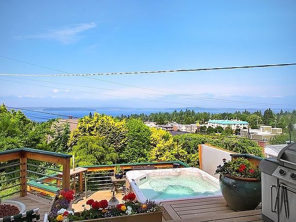 Stylish design incorporates the fusion of space with a tremendous view, opulent master suite, an expansive yard and entertainment deck featuring a hot tub and built in gas fire-pit. The contemporary yet timeless architecture of this home is one of its biggest selling points. The landscape is a medley of private lush lawn w/ mature shrubs, rockeries, and fragrant findings. An impressive home with inspirational views and large flowing areas designed for entertaining.
