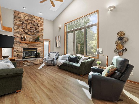 Showings begin Oct 4. Embrace country charm in this custom-built home with a wrap-around porch set on 2.56 acres. The soaring 2-story great room and stone fireplace create a warm gathering space, while the formal dining room, main floor bedroom/office, and laundry add convenience. Upstairs, a loft overlooks the great room, and the spacious primary suite offers a cathedral ceiling with skylights, jetted tub, dual vanities, and walk-in closet. The lower level brings the ?Northwoods? vibe with a gas fireplace, wet bar, and entertainment space. Outdoors, enjoy perennial gardens, waterfalls, and a paver patio overlooking the pond. New carpet and LVP flooring throughout, low Bristol taxes, and easy Hwy 151 access make this retreat both inviting and practical.