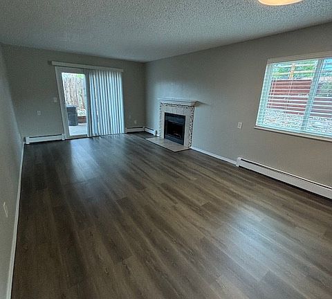 ** all utilities except electric included. Remodeled main level unit, newer paint, wood flooring, carpet. 2 bed, 1 full bath, Washer/dryer hookups, wood burning fireplace, back patio, off street parking. Near shopping and easy interstate access.