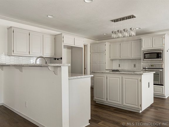Stop your scroll and check out this home! This four-bedroom, two-and-a-half-bathroom home is absolutely fantastic! Inside, the home offers practicality and comfort, with a large in-home office, formal dining area, and a primary suite on the first floor for added convenience. The home layout, including open concept kitchen and family room on the main floor plus the game room upstairs are perfect for family gatherings and entertaining. The refreshed kitchen, with its newly painted cabinets, granite countertops, and updated light fixtures, is sure to be the heart of the house. And with new carpet and interior paint throughout, it is truly move in ready! In the family room, the built-in bookshelves framing the fireplace add a touch of elegance and functionality. The addition of a brand new deck provides a great outdoor space for relaxation and entertaining. One of the standout features is its location: The Saddlebrook neighborhood is not only stable and serene but also incredibly convenient, with schools, shopping, dining, and more all nearby. Plus, being in the very desirable Jenks school district adds immense value. Go tour this home quickly - it will not last long!