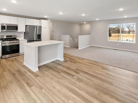 Center islandPantry cabinetStainless steel appliancesRecessed lightingWhite cabinetsQuartz countertopsFuture family room