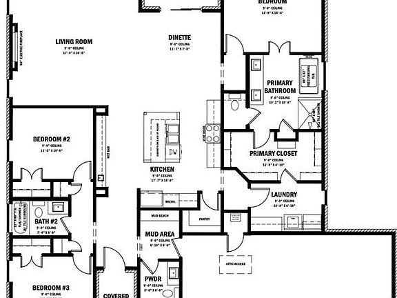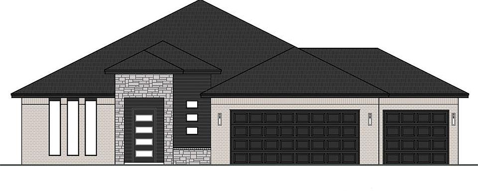 Step into luxury with The Woods Plan, a stunning home designed for both comfort and elegance. The spacious living area is bathed in natural light from expansive windows, highlighting a gorgeous fireplace and stylish wood-look tile that flows seamlessly throughout all common areas. The chef’s kitchen is a dream, boasting custom-built maple cabinets, sleek quartz countertops, stainless steel appliances, a direct vent hood, and striking pendant lighting—all complemented by a large walk-in pantry for effortless storage. Retreat to the private primary suite, where a spacious bedroom offers serenity and a walk-in closet with direct access to the laundry room for ultimate convenience. The spa-like primary bath is pure indulgence, featuring a free-standing soaking tub and a fully tiled, frameless glass shower for a true retreat experience. This thoughtfully designed split floor plan ensures privacy, with generously sized secondary bedrooms, ample closet space, and easy access to a stylish hall bath. A perfectly placed pocket office makes working from home a breeze! Enjoy the outdoors on the charming covered front porch or relax on the expansive covered back patio—perfect for entertaining or unwinding. The oversized 3-car garage provides extra space, and included blinds throughout add the finishing touch. This home comes complete with 2" blinds and a tankless water heater!
