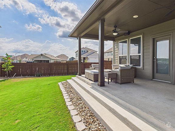 Welcome to Azure by Taylor Morrison—a thoughtfully designed, Energy Star–qualified home in the heart of Buda. Offering 4 bedrooms, 3 bathrooms, and 2,691 sq. ft. of beautifully upgraded living space, this residence blends modern efficiency with timeless style. Step inside to an extended foyer that opens to a private study—perfect for remote work or quiet focus—before flowing into an expansive open-concept living area. Natural light fills the cheerful breakfast nook and gourmet kitchen, where GE Cafe appliances, quartz countertops, cabinet hardware throughout, and abundant storage make every meal a pleasure. The luxurious owner’s suite is a true retreat with its spa-inspired bathroom and oversized walk-in closet. Two secondary bedrooms are conveniently positioned at the front of the home, while upstairs, a versatile living space and private guest suite create the ideal setup for visitors or multigenerational living. Outdoor living is equally inviting with a covered patio (pre-wired for audio), a stained fence, and refreshed landscaping—perfect for entertaining or quiet evenings. This home also comes packed with thoughtful upgrades designed to make everyday living more comfortable and efficient. Enjoy the tandem 3-car garage with a commercial-grade epoxy floor, a whole-home water softener, blinds on every window, and ceiling fans in each bedroom as well as the patio. With AT&T Fiber for high-speed connectivity, you’ll have the perfect setup for both work and play. And the best part: solar panels convey with the home, and the seller will pay off the solar loan at closing, leaving you with nearly three decades of transferable warranty and significantly reduced utility bills. The community also includes a sparkling pool, playground and amenity center. All values are approximate and to be verified.
