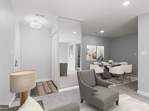 This bright and inviting, just renovated 2-bedroom, 1.5-bath condominium in Berkleigh Square combines style, comfort, and convenience. The landscaped grounds and secured entry lead you to Unit 204, where an open floor plan welcomes you with a spacious living room and dining area, complemented by plush carpeting and recessed lighting. Step out onto the balcony to enjoy fresh air and the colorful change seasons. Your culinary skills will shine in the updated kitchen, featuring luxury vinyl plank flooring, brand-new stainless steel appliances, quartz countertops, and a designer-inspired backsplash. The large primary suite provides a private retreat with its walk-in closet and en suite bath. The second bedroom works well as a guest room or home office, while a powder room and in-unit laundry add everyday convenience. The condo even includes a dedicated parking space in the parking lot for stress-free parking! Note: Select interior photos have been virtually staged