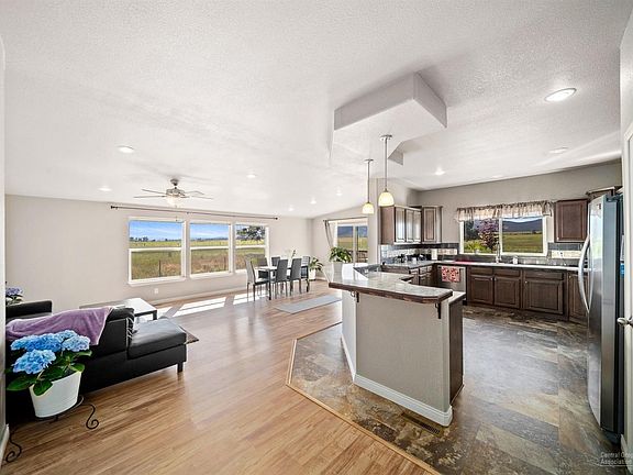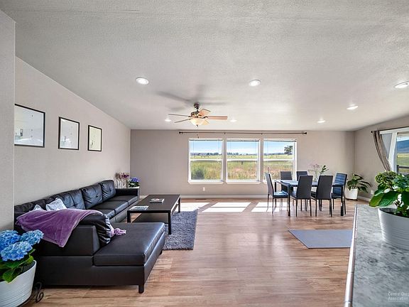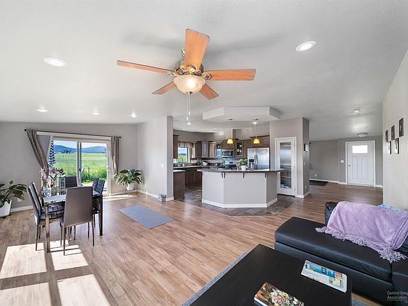 Desirable Powell Butte ranch on 186 acres with a full pivot. Newer triple wide with open great room, large open kitchen with eating bar, family room with beautiful cascade views, 3 bedrooms/2 baths and a large laundry/mudroom. 48 x 80 shop with 2 reznor heaters, a 12 x 12 pump room with laundry and 1/2 bath, 2 12 roll up doors and 4 14 roll up doors, 2 bedroom/1 bath living quarters above shop with nice upgrades.