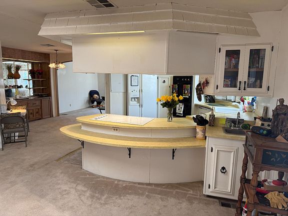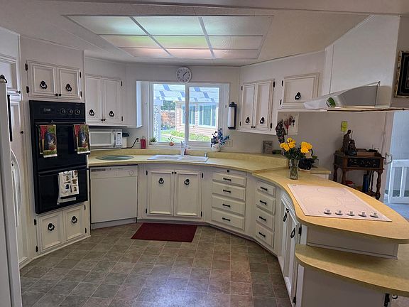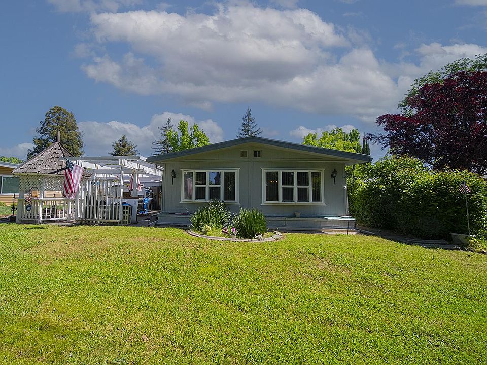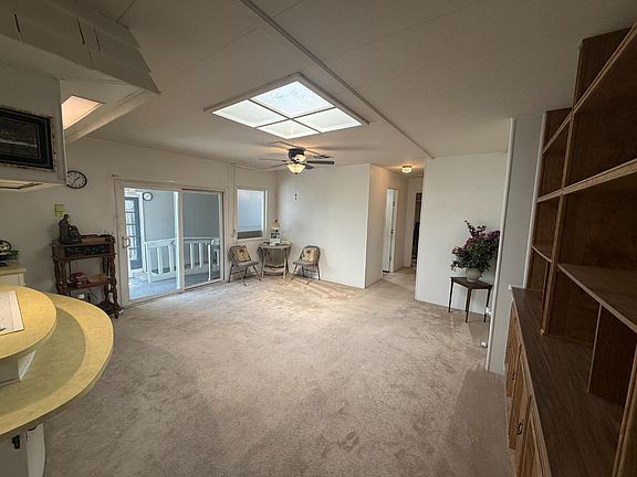 This home has a perfect layout with the kitchen centered between the living, dining and family rooms. The unique curved kitchen counter is inviting and welcoming to guests. Both bathrooms have been updated and the primary bath has a gorgeous soaking tub and a separate stand up shower. A nice view of the green space from the large living room windows lets you enjoy the scenery from your comfy chair. The large patio is also a place to enjoy the green space maintained by the park. A lovely setting to sit and enjoy the outdoors with friends and neighbors. And, the clubhouse is just up at the end of the street, convenient for attending community events. Lakeview Village has many activities and amenities that include a swimming pool, hot tub, horseshoes, a community garden a clubhouse with two pool tables, a workout room, a library, and a full kitchen. Many events take place in the clubhouse such as dances, entertainment shows, craft fairs, pot lucks, happy hours, bingo, and others. RV parking may be available. Welcome home to Lakeview Village!