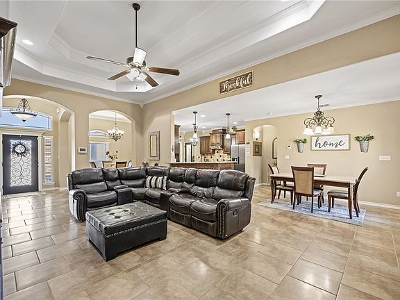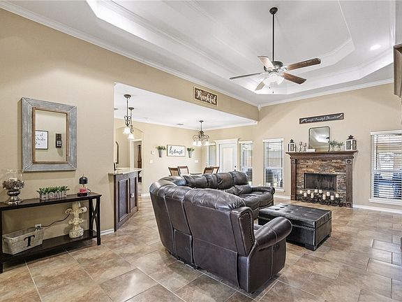 Immaculately maintained 4-bedroom, 3-bathroom home on the Southside, just minutes from Veterans Memorial High School! This gem features a spacious split floor plan, high ceilings, crown molding, custom cabinetry, and solar screens on all windows. One bedroom (aside from the primary) includes its own private bath, making it perfect for guests. The garage is currently used as an entertainment space with beautiful custom woodwork, offering a fantastic bonus for anyone seeking extra room for hosting or hobbies. If preferred, it can easily be converted back into a standard garage. Out front, the long driveway provides ample additional parking, while the backyard includes two storage sheds for extra storage. Inside, you’ll find tiled walk-in showers, relaxing bathtubs, and elegant finishes throughout, making this home truly move-in ready. Conveniently located near everything the Southside has to offer, including schools, shopping, and dining. This Manhattan Estates beauty has it all and is ready for its newest owner. Schedule your showing today!