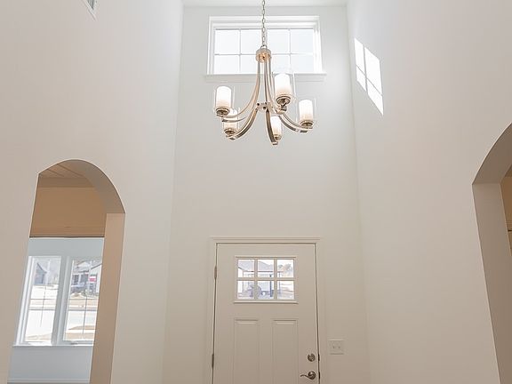 The new construction Ellington plan includes a mud bench in the Utility Room entry from the Garage, with a separate Laundry Room. The 12' vaulted ceiling in the Great Room combined with the openness of the Kitchen and Nook make for a very friendly space. Kitchen with granite counters and island, built-in stainless steel appliances, pendant lights over the island. Lots of glass with wonderful natural light in this home! Master Suite with Master Bath that includes a 2 sink vanity, separate shower and tub, and large walk-in closet. Master closet has door to the laundry room, enabling Prime Suite exit thru laundry room to mud room then garage exit or back into the main body of the home. Covered patio has additional concrete.