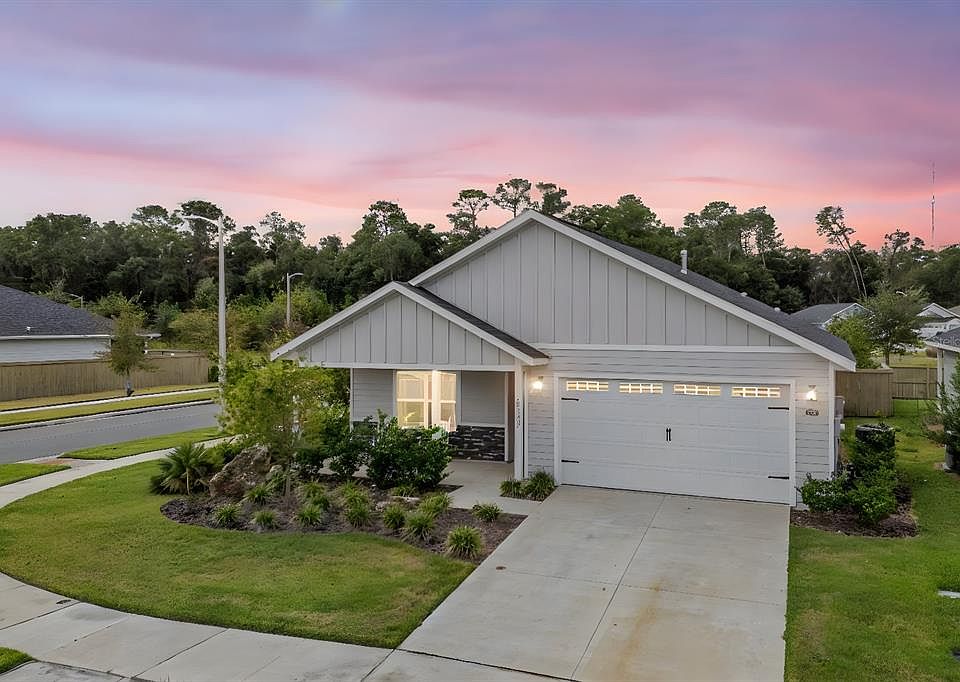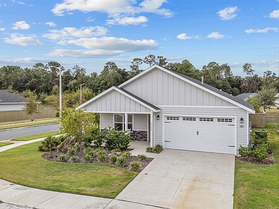 Better Than New – Move-In Ready 4 Bedroom Home in Grand Oaks! This immaculate 4-bedroom, 2-bath, 1,810 sq. ft. home sits on a spacious corner lot in the desirable Grand Oaks community. Designed for modern living, it offers comfort, style, and convenience in every detail. At the heart of the home is a beautifully appointed kitchen featuring quartz countertops, a large island with seating, and abundant storage in the soft-close drawers, cabinets, and pantry. A Bosch refrigerator—complete with water and ice dispenser—is included in the sale. The apron-front sink makes cleanup easy, even for large pots and baking sheets. The open-concept layout seamlessly connects the kitchen, dining, and living areas, enhanced by tray ceilings and ceiling fans in both the main living space and primary bedroom. Natural light pours through three 8-foot sliding glass doors that lead to a screened lanai and fully fenced, private backyard—perfect for relaxing or entertaining. The primary suite offers a luxurious retreat with a double-vanity bathroom featuring quartz countertops, a spacious tiled walk-in shower with a rain showerhead, a private water closet, and a large walk-in closet for easy access to all your clothing and accessories. At the front of the home, three additional bedrooms—each with custom closet organizers—provide space for family, guests, or a home office. A full bath with a tiled shower/tub sits conveniently between two bedrooms. A linen closet in the main hallway and a front hall closet ensure plenty of extra storage. The laundry room, located away from the main living areas, can accommodate an oversized washer and dryer set behind a closed door. The two-car garage offers additional storage and direct access across from the laundry room. Low-maintenance landscaping wraps around the front and sides of the property, featuring year-round pink and red roses that you can enjoy from your charming front porch with a morning coffee. This home is truly move-in ready—no waiting for a builder’s punch list. Fiber internet is already installed, and the home is equipped with central A/C and heat, a tankless gas water heater for on-demand hot water, a Google Nest thermostat, Arlo video doorbell, and irrigation system. Grand Oaks offers a community pool, playground, and miles of sidewalks for walking and biking. Ideally located just minutes from Butler Plaza, The Oaks Mall, the University of Florida, Shands Hospital, Santa Fe College, and major roadways. Nearby conveniences include Walmart, Aldi, Target, Oak Hall Academy, and O2B Kids Supercenter. Utilities are serviced by Gainesville Regional Utilities (GRU). This home combines modern design, thoughtful functionality, and an unbeatable location—everything today’s buyers are looking for. Don’t miss your chance to own this turnkey gem. Schedule your showing today and make it yours!