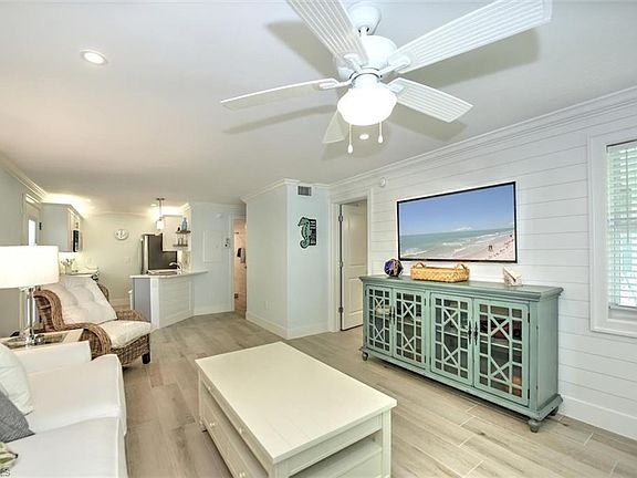 MUST SEE to appreciate this Beauty! First floor corner end unit with BONUS unique one-of-a-kind PRIVATE paver PATIO. Quality renovation and attention to detail is apparent with new plumbing, electric, hot water heater, appliances, and custom cabinetry with beautiful quartz countertops. Architect redesigned floor plan provides open and spacious living with special features not seen in other units. Stunning new tile in both bathrooms and new hurricane impact windows. Condo is move-in ready and tastefully decorated with a Beach Cottage Vibe. Fabulous most sought-after location within the Olde Naples Historic District - only 1 block to Crayton Cove and City Docks and walking distance to Third Street and Naples gorgeous white sand beach. Active Community Center covers an entire city block and has been completely updated including resort style pool with paver pool deck, activity rooms and facilities. ADD this gem to your showing list for most discriminating buyers!