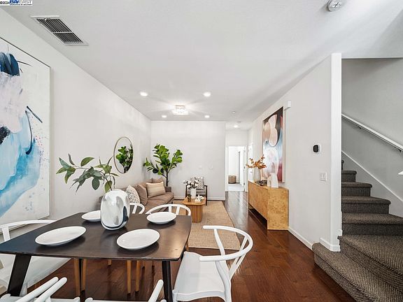 Welcome to this stunning and remarkable 3-bed, 3-bath townhome located in the heart of Milpitas! Built just 9 years ago, this beautiful residence features a spacious open-concept layout with a bright living area, dining space, and a modern kitchen adorned with granite countertops and stainless steel appliances. Recessed lighting enhance the inviting atmosphere. The functional design includes one bedroom and a full bath on the main floor, while the upper level boasts two large bedroom suites, including a primary suite with a dual vanity, a large walk-in closet with custom-made closet cabinetry, and an additional closet for ample storage. Enjoy the convenience of an in-unit laundry and a finished 2-car tandem garage with premium epoxy flooring. The community is anchored by Bob McGuire Park, offering tennis courts and a play area for children. With top-rated schools nearby, including Mabel Mattos Elementary & Stratford, and within walking distance to the Great Mall, Trader Joe's, and VTA/Bart Station, this home is ideally situated for easy commuting via highways 680, 880, and 237, making it perfect for those working in the tech industry. Don’t miss this wonderful opportunity to own a home that seamlessly combines comfort, convenience and style! LOW HOA DUES & NO RENTAL RESTRICTIONS.