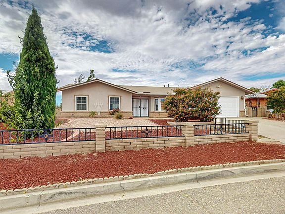 Updated ranch-style home situated on .3 acres in Rio Rancho. Three bedroom, 1 3/4 bath. Lots of updates with new tile, carpet, and freshly painted throughout. Newer refrigerated HVAC. Large great room with spacious kitchen. Oversize pantry. New lighting in living and kitchen areas. Walk in closet in the primary bedroom with updated bathroom. Large, covered patio with maintainable xeriscaped front and back yards. Two car garage. No HOA or PID! Conveniently located close to shopping, movie theater, restaurants, and Rust Medical Center at Unser and Southern. Rio Rancho High School district. Welcome Home!