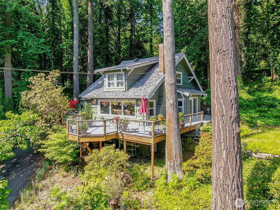 Nestled among evergreens in the rolling hills of South Bellingham, this home offers a peaceful, forest-like setting with rare privacy. Bordering the city’s newest park project—Hundred Acre Wood—miles of scenic trails and outdoor adventures are right outside your door. Inside, warm wood floors, a cozy wood-burning fireplace, and abundant natural light create a welcoming retreat. The main-level primary suite features direct deck access, while upstairs provides three additional bedrooms. A spacious deck is perfect for morning coffee or outdoor entertaining, with garden beds ready for your personal touch. Additional highlights include a carport, a partially finished basement for flexible use, and potential to create a second residential unit.