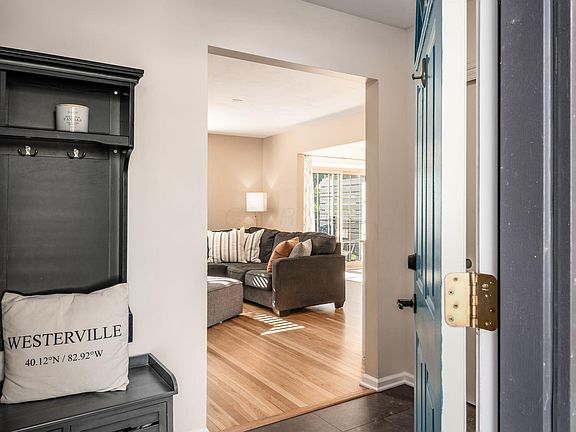 Fabulous Central Westerville Location! This charming brick ranch home is ideally located near the Rec Center, Uptown Westerville, top-rated schools, parks, and the Annehurst swimming pool! Step inside to discover a bright and open floor plan with stunning hardwood floors throughout. The cozy Hearth Room, featuring a wood-burning fireplace with a whitewashed brick hearth, is the perfect spot to relax. It flows seamlessly into the spacious kitchen with stainless steel appliances, a breakfast bar, and a pantry.