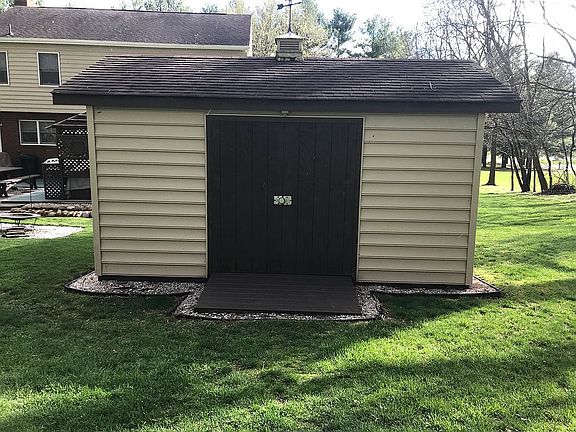 Finished Lower Level with office, study, game room with bar, family room and built in room divider. Pull down steps in garage for storage. Outdoor lighting, Hot Tub, Greenhouse and storage shed with electric. 1.66 Acres, 2 peach, 1 nectarine and 1 apple trees.