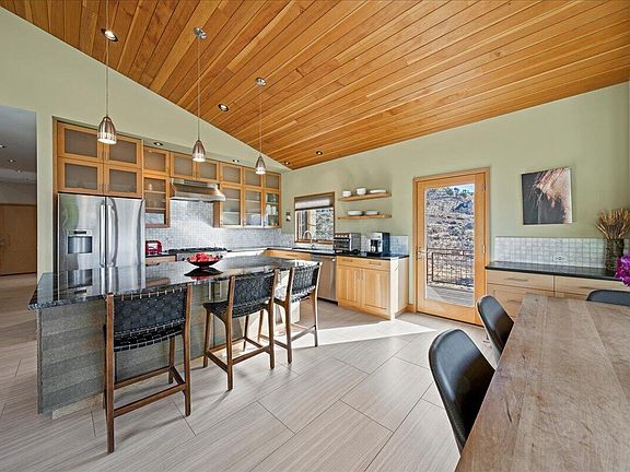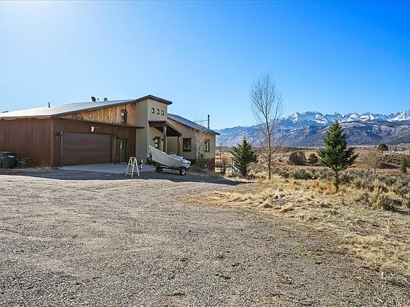 Welcome to small mountain town living at its finest! This gorgeous, mountain contemporary, custom home was built by renowned local builder Eric Dickerson of DCI Construction. The 3 acre lot overlooks the Open Space and Pond and enjoys huge views of the Cimarrons and San Juan ranges. The main level consists of the Primary Bedroom, a combo Kitchen/Living Room, Laundry Room, a spacious pantry, Garage access and the attached South Facing Deck. High end finishes include an AGA Gas Range and Oven, Bosch Refrigerator and Dishwasher, an elegant Rika Wood-Burning stove with glass doors, a Fir tongue and grove ceiling and extensive custom cabinetry. The Primary Bath features a soaking tub and steam shower. The exterior has multiple low-maintenance treatments. including metal, stucco and cedar.