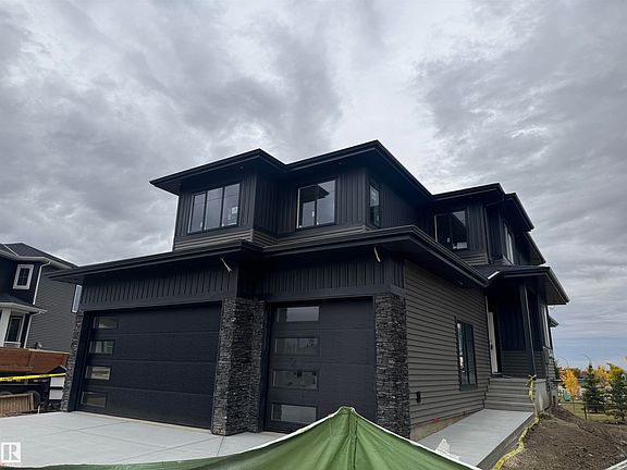 BRAND NEW! Craftsman Style Home by LCM Construction located in the Hilldowns neighborhood, Spruce Grove! This corner lot 2 story home is over looking the neighbourhood park (possible future gate to park), the home offers exceptional curb appeal w/grey vinyl exterior, black window & door trim, black triple garage doors, with complimentary stone on the front. Main Floor boasts a modern floorplan w/9ft ceilings, luxury vinyl plank flooring, flex/office room, mudroom w/built in bench, 20ft open to below living room w/ feature wall/fireplace, large kitchen w/4ft wide quartz island, walkthrough pantry, SS appliances & modern black fixtures & hardware. Upstairs offers an open bonus room, carpet flooring, laundry room w/quartz countertop, 2 large bedrooms & a spacious primary bedroom w/5 piece ensuite, modern soaker tub, tiled shower, enclosed toilet & walk-in closet. Enjoy entertaining in the spacious backyard w/a covered deck feature over looking the neighbourhood park. October 18th Full Launch Date.