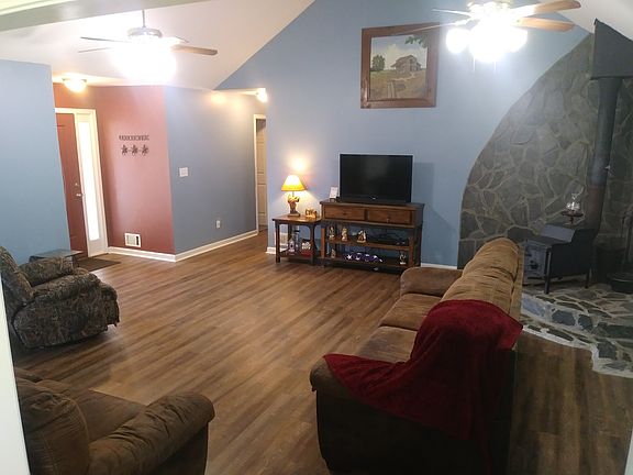 Rustic Ranch with loads of land! Tons of updates including new flooring & fresh paint throughout. Split bedroom plan w/3 bedrooms, including the master, on one side of the home, and an additional 4th bedroom on the opposite end - great for teenagers or roommates. Loads of cabinet space in the Kitchen. Dining Room features a large Bay window overlooking the huge backyard - great sunset views! Living Room boasts wood burning stove w/flat stone hearth. Large Sunroom off the Living Room leads out to a fenced area for pets. The Sunroom also has a screened-in porch attached - a beautiful private escape. This large corner lot has loads of space for a growing family! Well House (public or well accessible) w/storage, plus a tire swing, tin roof and great schools!