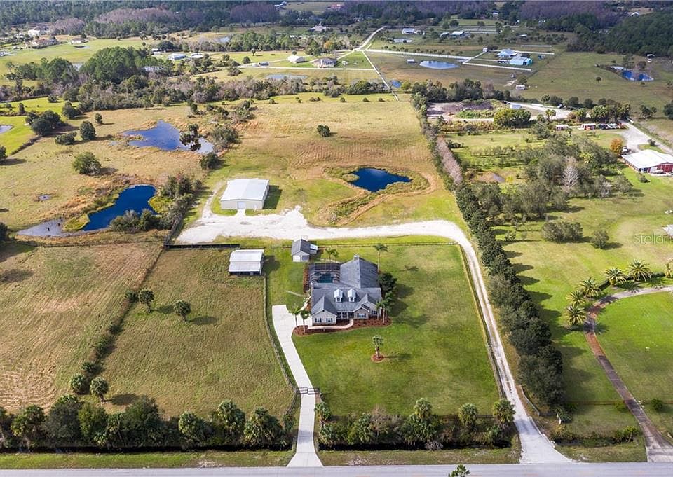 One or more photo(s) has been virtually staged. 3D Walk Through this Equestrian Estate from the comfort of your own home! 10 Acres CLEARED, FENCED PASTURE. WAREHOUSE with electric, water; office, restroom and separate driveway to access from Lemon Bluff Rd. RV/3 STABLE BARN w/electric & water, Tack Room & Horse Round Pen. COUNTRY LIVING at its best. This property is ideally set up for multiple functionality. MAIN HOUSE features OPEN FLOOR PLAN. Spacious FOYER with FRENCH DOORS leads to FORMAL DINING room and then to FAMILY/KITCHEN combo. MASTER ENSUITE is perfectly laid out with double vanities, jet tub and separate shower. MASTER CLOSET has built in closet system already so all you have to do is bring your clothes! NEW CARPET, NEW INTERIOR PAINT in the main house. Secondary bedrooms are located down the hallway from Master Ensuite. Separate GUEST HOUSE shares pool area and connects to the main house by a covered walkway. LOCATION LOCATION LOCATION: HORSE TRAILS LESS THAN 1/4 MILE, Minutes to 417, Sanford Airport, I-4 & Shopping, 25 minutes to the BEACHES.