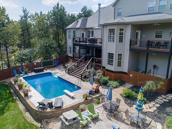 Empty-nesters downsizing! Priced well below recent appraisal. Property features 2 master suites, 2 complete gourmet kitchens, 4 living areas, theater room, 6 bedrooms, 6.5 baths, 2 laundry rooms, 4 fireplaces, oversized 3 car garage, 3 decks with covered lower level deck overlooking backyard oasis plus covered main level porch with spiral staircase to pool patio, Custom tiled His & Her LL master shower. Lawn & landscaping all covered by irrigation system. 3 HVAC systems for comfort control (2 of which are dual fuel), NEW to the area custom LL floor finish. Attention to detail hasn't been missed in this property! BTW, His & Hers HUGE custom walk-in closets in LL master suite!