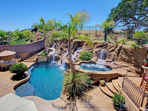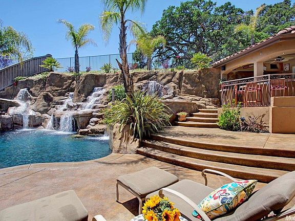Resort backyard, Elegance at its finest! Upgrades galore. Folsom's sought after custom gated community HillCrest. Backyard backs to greenbelt w/views of hillside & lake from master balcony. Stunning sunsets! Outside covered cabana w/fireplace. Covered kitchen & bar. Pool & 10 person spa with waterfalls. 5 bedrooms, 4 fullbaths. Bedrm & bath downstairs. Large loft upstairs great for office, plus HUGE bonus room with bar, balcony & built-in entertainment ctr. Upgrade list avail too many to include