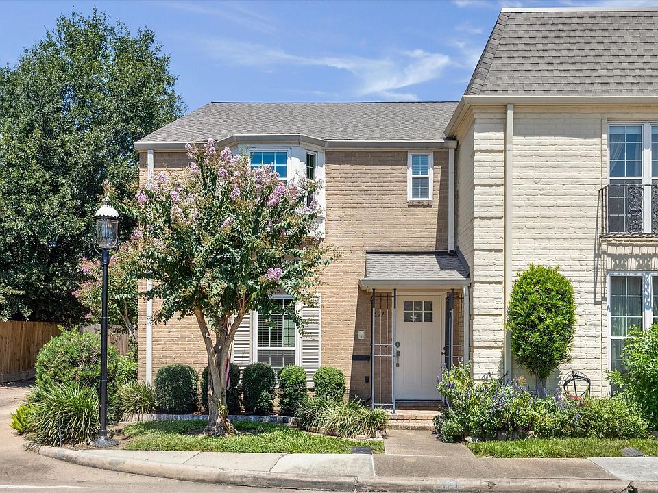 Wonderfully updated corner home with an open floorplan! The kitchen boasts a large island with seating, custom cabinetry with ample storage, and flows seamlessly into the family room and convenient half bath down. Enjoy outdoor living on the private patio with artificial turf, lighting, and a new sliding door (’22). Upstairs, you’ll find two spacious bedrooms— the primary retreat offers a walk-in closet and beautifully updated bath, while the secondary bedroom has its own full bath. The garage is a must-see with a climate-controlled storage/workshop space, perfect for hobbies or projects. Recent updates include: recessed lighting (’22), windows (’22), microwave (’25), front door (’25), and HVAC (installed just 1 month ago). In the heart of Houston & Zoned to Exemplary SBISD, this home offers easy access to 610, I-10, and 59, with a multitude of shopping and dining options just minutes away!