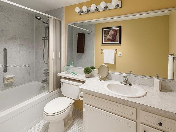 Screened balconyNeutral tileAccordion hurricane shuttersSpacious and turnkeyTasteful furnishings
