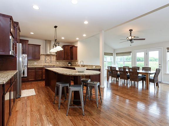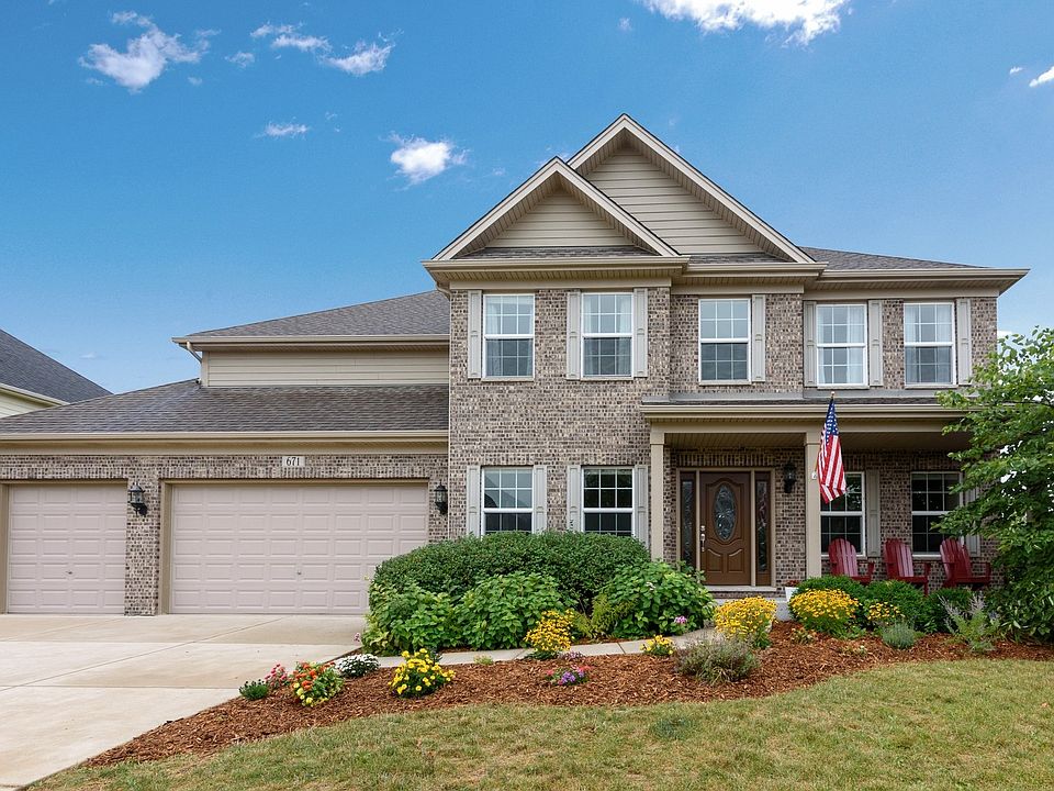 Stunning custom built home in desirable Highland Woods shows like a model ~ Gorgeous landscaping, Brick & Front Porch exterior plus concrete driveway to 3-car garage welcome you into this inviting home ~ Immaculate hardwood floors and freshly painted walls flow through the open floor plan ~ Formal Living Room and Dining Room on either side of the 2-story Foyer showing off the open staircases to the second floor and basement ~ Soaring ceiling and windows highlight the gorgeous custom stone fireplace with rounded hearth and white wooden mantle ~ Open to the Family Room, the Kitchen & Breakfast Rooms offer an abundance of entertaining space ~ Kitchen features stainless steel appliances including double oven and hood, tile backsplash & elongated island with breakfast bar at end ~ Gourmet Kitchen also features a walk-in pantry, granite counters and lots of cabinets ~ Breakfast Room with vaulted ceiling, recessed lights & windows all around with views of the backyard ~ Laundry room & 5th Bedroom/Office/Playroom complete the 1st floor ~ Upstairs find 4 spacious bedrooms including Master Suite with tray ceiling and amazing bathroom with walk-in double shower & separate jetted tub plus a huge walk-in closet ~ One other bedroom with walk-in closet too! ~ Deep-pour full basement with plumbed-in bath and fully insulated ready for your ideas ~ Upgrades galore including back-up sump pump (2017), newer furnace (2015), 30 year architectural shingles, insulated attic, Pella windows, custom window treatments, NEW dishwasher, Carpets professionally cleaned, & more ~ Home backs to open space ~ Neighborhood amenities include walking paths, playgrounds, water park, splash pad, community center, fitness center, sand volleyball, tennis, basketball courts & more all for a LOW monthly association fee ~ Burlington Schools! This is THE ONE!!
