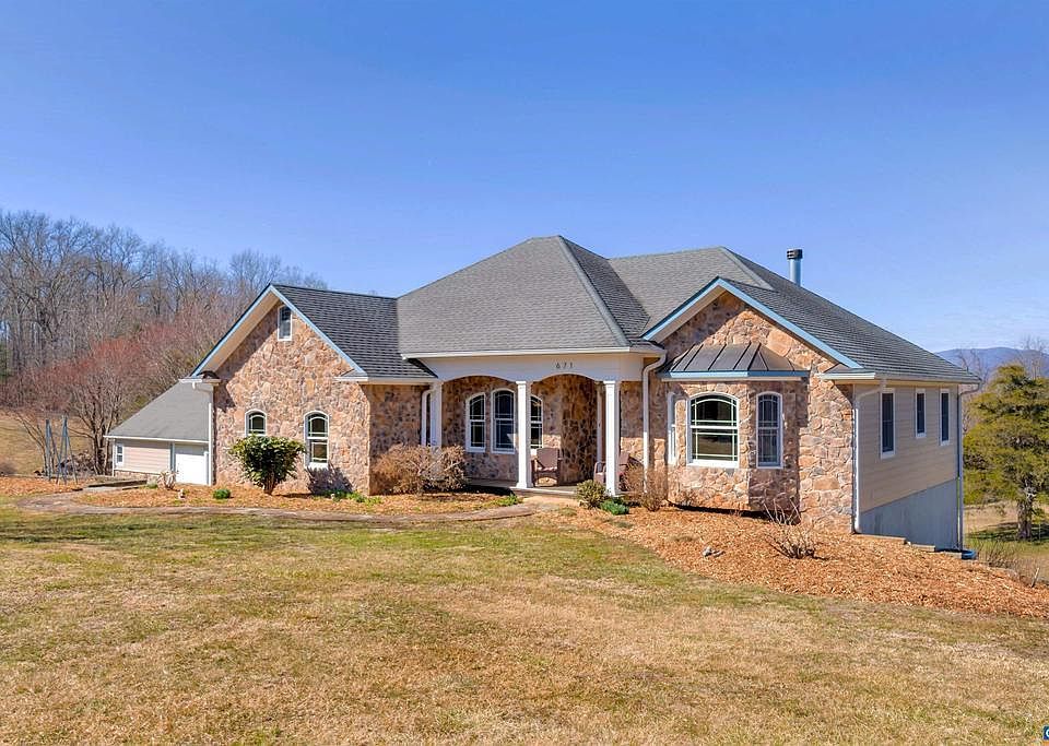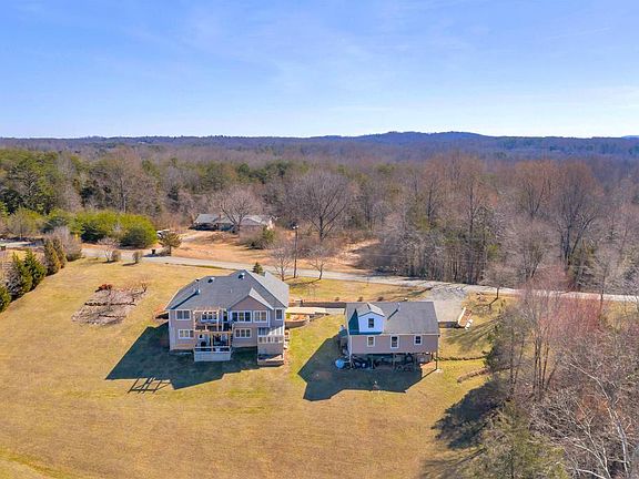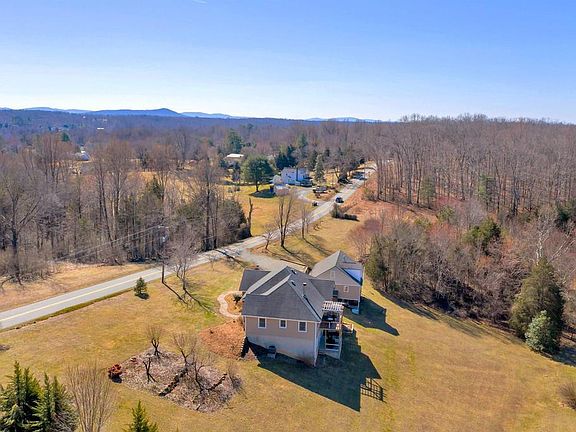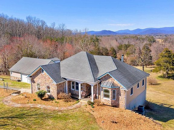 Meticulously maintained home with abundant options for living the good life. Enjoy vast Blue Ridge Mountain views from your deck, watch the sunrise from your front porch, relax by the stone fireplace, read from the seat in the bay window, or take advantage of cooking and entertaining in the modern, open kitchen and living space. The walk-out basement features a full finished bath and patio. In the attached hobby shed, you can explore new endeavors. Spend time outdoors on your four rolling acres, gardening in your raised beds or harvest peaches and apples from your orchard. 10' ceilings, hardwood Brazilian cherry floors, exposed beams, granite countertop, custom Pecan cabinetry, countertop gas range, detailed masonry, radiant heat tile and a double sink vanity and jacuzzi in the owner's suite are just a few of the lovely features this gorgeous, move-in ready home has to offer. Attached 1-car garage, detached 2-car garage with extra storage space. New HVAC in 2020. Septic tank recently pumped in March 2022. A-1 Zoning may permit horses. Property may have additional division rights.,Cutting Board,Granite Counter,Wood Cabinets,Fireplace in Family Room