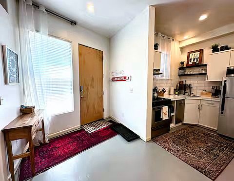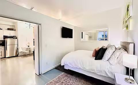 This unit is nestled away in a quiet, centrally located, below ground courtyard with lots of natural light. Upon entering, you'll find a quaint, modern space decorated with local artwork and essential amenities to make you feel at home.