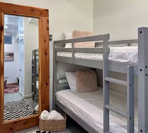 Comfortable living spaceQuaint modern spaceBunk bedsModern studioKing bedSeparate bedroomLocal artwork