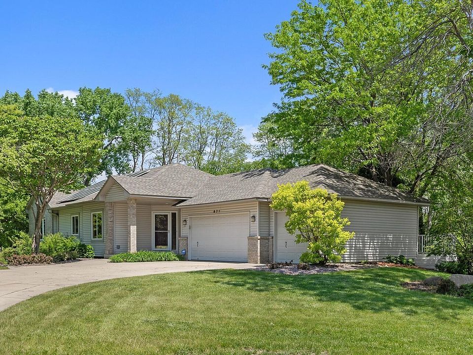 Charming one-level walkout rambler with lovely views of Fitz Lake. Home features 2 bedrooms on main level, 1 perfectly adaptable as a home office. The open layout creates a seamless flow between the living spaces, enhanced by the warmth of a gas fireplace on each level. The heart of the home is a light-filled space where the living room, kitchen, and dining space all come together. Step out onto the oversized maintenance free deck, ideal for morning coffees or entertaining guests for an evening dinner. You will love the spacious 640 sq ft 3-stall garage and main floor laundry putting convenience at your fingertips. The lower level offers a second living retreat area with a wet bar for entertaining, 3rd bedroom and ¾ bath for guests. Lower Level also offers easy access to the outdoor paver patio for friend gatherings around a fire and an oversized storage with built in shelving. Every detail is designed for comfort & style. Lebanon Hills Park across street with bike and walking trails.