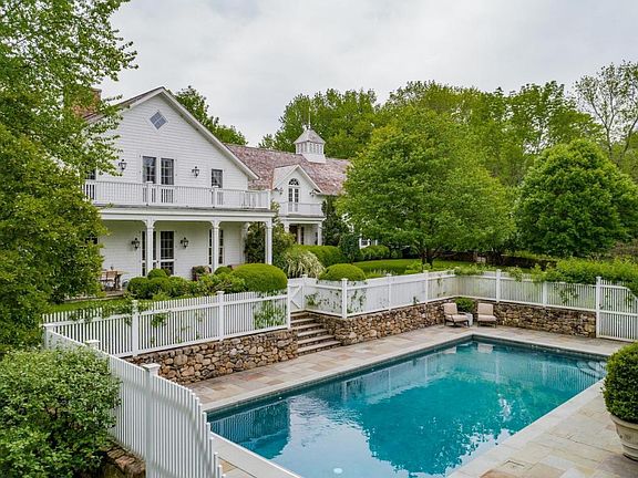 Timeless, Treasured and Tranquil. Re-imagined by beloved New Canaan residents Jill and Harry Connick, Jr., this iconic home is a completely remodeled and updated version of the original 1890s dairy farm, which today stands complete with an antique barn, delightful cottage, exquisite pool and stunning pool house. Perched high on a hill, this reinvented home allows for spectacular light and sweeping views from every room. Experience peaceful mornings in the expansive, gracious kitchen with fireplace, afternoons relaxing in the stunning family room or library, and evenings entertaining family and friends on the screened porch, or a larger party of guests in the spectacular formal living and dining rooms.