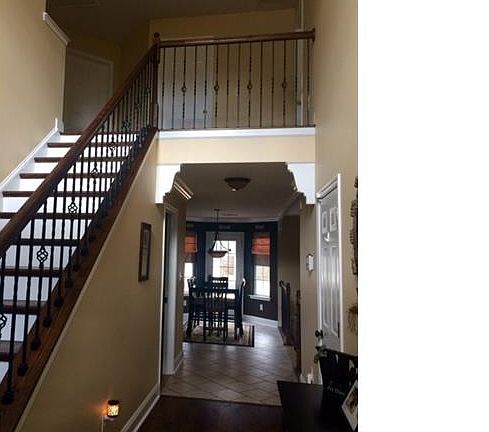 Beautiful home w/Custom Designer touches!Wide baseboards,Crown Moulding, Vaulted Ceiling, Iron Rod Stairwell.30 yr Architectural roof(2012). Engineered Hardwood and Ceramic tile on First flr. Open kitchen w/ nice size Breakfast area.Spacious sunken living room has built in bookshelves.Updated lighting fixtures.Laundry on main. Huge 16x20 Utility shed w/ 2 loft. Front yard irrigation. Oversized patio w/pavers and lighting. Private view backing up to woods.Community Playground is just a lot away.