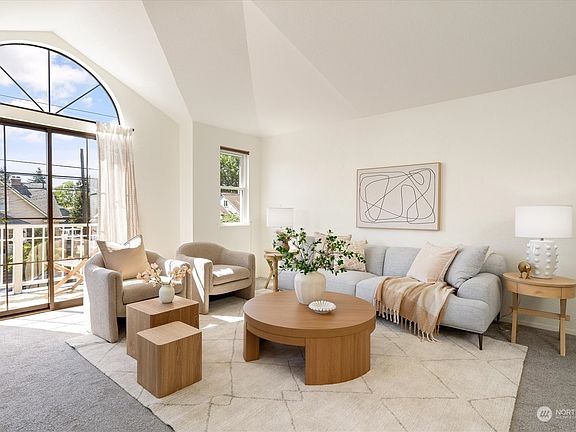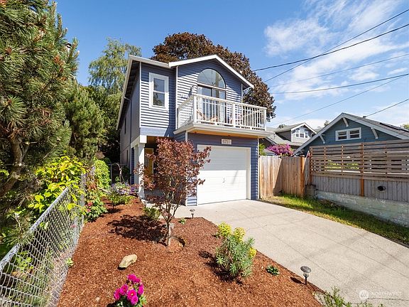 Updated and light-filled home is perfectly perched between Phinney Ridge and Ballard. Entry level boasts two bedrooms and a full bath, opening to a charming covered patio in a fenced backyard ideal for your summer hosting. Upstairs, a bright and spacious living room with tons of light, electric fireplace, and vaulted ceilings leads to a west-facing balcony with sunset views. Expansive eat-in kitchen offers newer appliances, quartz countertops, ample storage, and pantry. Primary bedroom features an updated bath with a large walk-in shower. Additional updates: Newly painted exterior, flooring, siding and electrical. Attached garage and driveway parking. Highly sought-after schools! Stroll to coffee, restaurants, transit, parks...everything!
