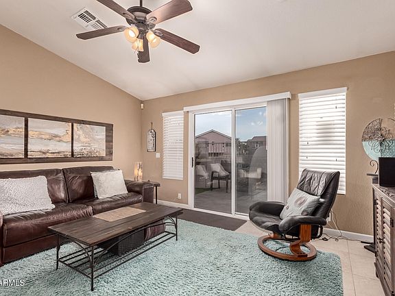 The perfect lock and go home! Situated in a gated community, this amazing home is a 2 mile bike ride from the trail head for the Hawes Trail System in the Tonto Nat. Forest, has a community hot tub, pool and workout facility and is perfect for your winter get away! Interior features vaulted ceilings, tile flooring, neutral palette, ceiling fans, and plantation shutters. Inviting living & dining room adorned with pre-wired surround sound bathes in abundant natural light & seamlessly connects to the back patio through sliding glass doors. The kitchen has stainless steel appliances, plenty of honey oak cabinets, pendant lighting, granite counters, stone backsplash, and a breakfast bar. main bedroom offers a walk-in closet and a trendy barn door to the bathroom comprised of dual sinks and a shower & tub combo. In the private backyard, you will find an exterior fireplace, artificial turf, and pavers. Don't miss this fantastic opportunity