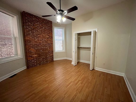 This one bedroom, first floor apartment features tall ceilings with fans, exposed brick, hardwood floors, and private in unit laundry. The kitchen has custom cabinets, granite countertops, dishwasher, built-in microwave, gas stove, garbage disposal, and full size refrigerator. The bathroom has a large vanity and ceramic tile around the tub. There is a high efficiency gas heat and central AC. Tenants pay gas and electric. Landlord pays water, sewage and trash.