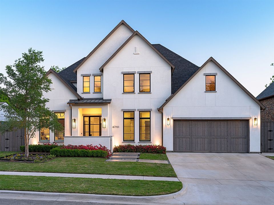 Nestled within the prestigious neighborhood of Preston Hollow, 6710 Northwood Road is an architectural masterpiece built by Thomas Signature Homes. Completed in 2022 the home consists of 5626 square feet, of a thoughtfully designed floor plan. With meticulous attention to detail this five bedroom, 5.2 bath is thoughtfully designed to include the primary on the main level, offering a serene retreat as well as a secondary bedroom. Three more bedrooms reside upstairs—alongside a game room, bonus room and media room—offer endless possibilities for entertainment and relaxation.Coupled with the home's luxurious amenities such as Subzero-Wolf appliances, Wolf Steamer Oven, open kitchen, and electric shades and Plantation Shutters, it beautifully exemplifies the beauty of new construction living. A dedicated study provides a tranquil workspace, and the exquisitely turfed backyard, complete with an outdoor living area beautifully provides an elevated living experience.