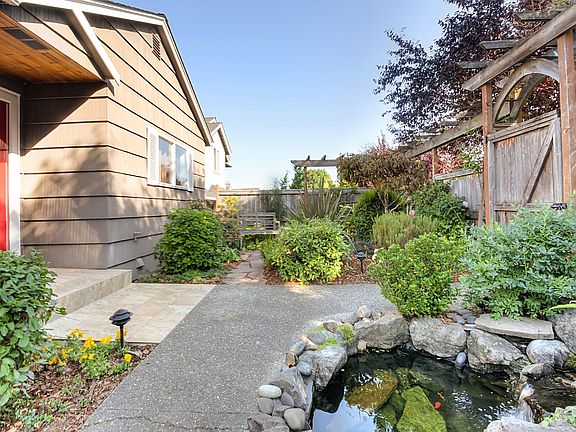 Jewel Box on Gatewood Hill! This well-maintained home with expansive Sound & Mountain views from both levels is filled w/gems! Prof. landscaped entry garden with fish pond, new porcelain tile entry & foyer. Lovely bamboo floors & staircase, light-filled remodeled kitchen & baths w/quartz counters, soft-close cabs. Master en suite enjoys views on lower. Great view deck, new roof, sewer, panel, gutters, carpet. Walk to restaurants, cafes, retail, library, bus, etc. City living, w/out city hassles!