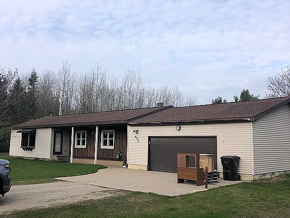 6711 M.75 Road, Escanaba is the actual address. Home is located in Soo Hill, behind the Soo Hill school and is sitting on 6.4 acres. Roof is 5 years old. Brand new gas boiler was installed 7 months ago. Large yard for the kids to play. Deer run through the yard daily. Sand point for water. Natural gas. Two bedrooms have all new drywall, ceiling, paint, trim and flooring. New flooring and trim throughout the kitchen and dining room.