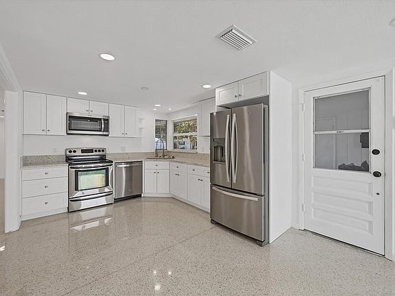 Step inside this beautifully remodeled mid-century modern gem located in the highly sought after Gulf Gate community. This stylish 3-bedroom, 2 bath home also features two versatile bonus rooms, perfect for a home office, fitness room, Florida sitting room, or playroom, offering flexibility to fit your lifestyle. In keeping with its mid-century roots, the original Terrazzo flooring has been fully restored and polished, preserving the home's character while everything else has been reimagined with modern updates. The brand-new kitchen shines with custom cabinetry, quartz countertops, stainless appliances, and an eat in kitchenette, creating an inviting space for everyday living and entertaining. Both bathrooms have been completely remodeled with new vanities, showers, fixtures and lighting for a fresh, contemporary look. Major upgrades include a new roof, new AC, and new Hot water heater, providing peace of mind for years to come. Enjoy Florida living at its best in the beautiful, fenced backyard, surrounded by mature landscaping and shade trees, ideal for relaxing or hosting gatherings, or a playground for your furry friends. Perfectly situated just a few miles from the world-famous Siesta Key Beach, Gulf Gate offers convenient access to shopping, dining, downtown Sarasota, St. Armand's Circle, Lido Beach and Venice Beach. This move-in ready home blends classic charm with modern luxury, a rare find in one of Sarasota's most desirable neighborhoods.
