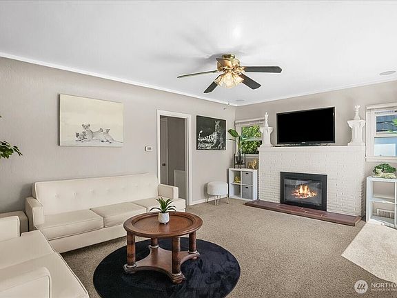 Welcome to this timeless Tacoma gem featuring 3 bedrooms, 1.5 baths, and a full basement ready for your vision. Perfect for a 4th bedroom, office, home gym, or bonus space. Classic charm includes a cozy wood-burning fireplace, coved ceilings, updated energy efficient windows, and built-in storage throughout. The kitchen flows into the dining area and offers ample counter space and great storage. Convenient main floor laundry with half bath. The spacious full bath includes a double-sink vanity. One-car garage, extra side parking, storage shed, and a large backyard with space to garden or entertain. Close to shopping, dining, and more!