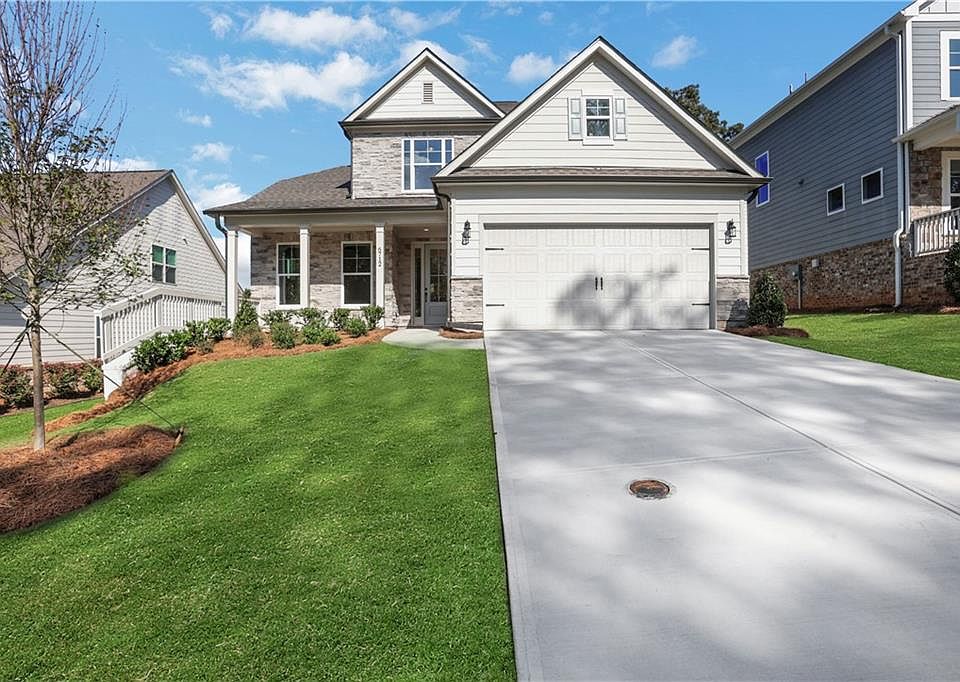 READY IN OCTOBER! Discover the Raleigh by Eastwood Homes—a stunning primary-on-main design that blends modern farmhouse charm with upscale luxury. Located in the sought-after Cambridge community, this home offers thoughtful design, high-end finishes, and a welcoming layout perfect for both everyday living and entertaining. From the curb, the Raleigh makes a statement with its light exterior palette, full white brick along both sides of the home, elegant stone accents on the front, and a beautiful Silvermist front door that sets the tone for the stylish interior. Inside, you're welcomed by soaring 20-foot ceilings in the family room and a dramatic stacked-stone fireplace that stretches all the way to the ceiling. The designer kitchen is equally impressive, featuring crisp white cabinetry, a dark maple accent island, quartz countertops, gold hardware, a 5-burner gas cooktop, and a built-in microwave/oven combo. The main level hosts the spacious primary suite, complete with a spa-inspired bathroom that includes a 6-foot luxury shower with a built-in 1-foot seat for added comfort. A convenient half bath is also located on the main floor. Upstairs, you'll find three additional bedrooms, a full bath, and a cozy loft space that opens to the living room below, adding to the home’s open and connected feel. Located in the charming community of Cambridge in Flowery Branch, you'll enjoy a peaceful setting with quick access to shopping, dining, and everyday conveniences. Neighborhood amenities include a community pool with cabana, a playground, a dog park, and scenic sidewalks perfect for evening strolls. Whether you're looking for a strong sense of community or proximity to local attractions, Cambridge offers the best of both.