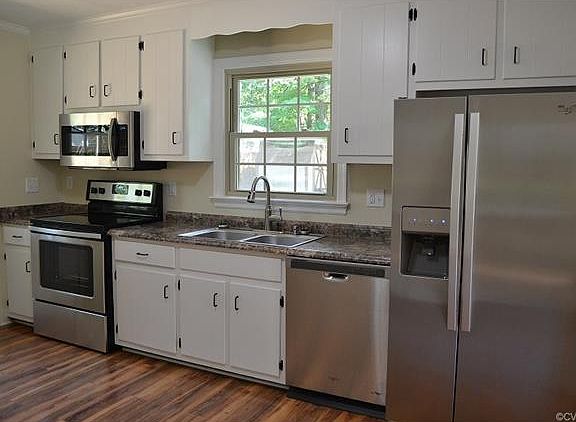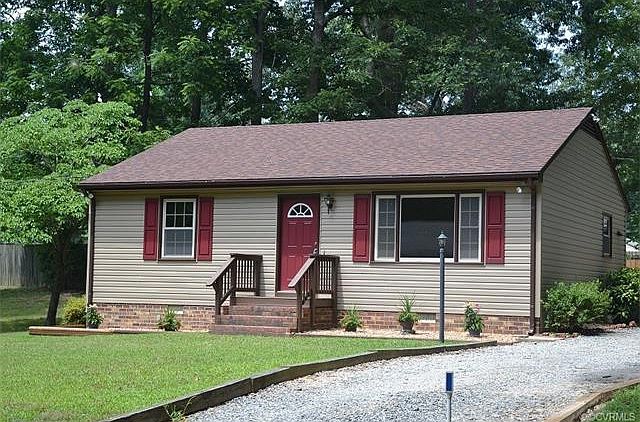 Looking to live at the lake with community beach... here is your chance!! This maintenance free vinyl sided 2-bedroom ranch has been remodeled throughout! All rooms are freshly painted and new beautiful flooring. Family room has a picture window allowing lots of natural light. The Kitchen is nicely equipped with new stainless appliances including built in microwave, flat surface stove, dishwasher & fridge. The bath has new ceramic tile flooring & tub surround. Out back the 16 X 16 rear deck makes a great outdoor gathering area after spending your day on the 155-acre community lake. All on a cul-de-sac (double) lot with lots of privacy! Just mins. to 64 & located within 30 mins. of Williamsburg & Richmond. Note: Price was reduced as home has 3 bedrooms however tax record states 2 and is said to be a two bedroom septic. Trying to verify.