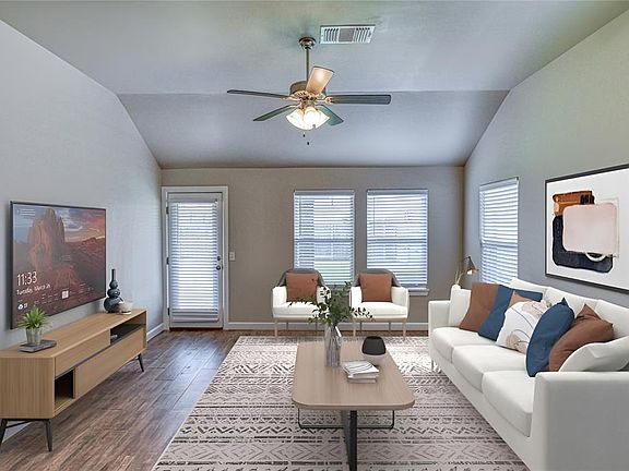 Super cute 3 bedroom home in Northbrooke, located in the highly desired Deer Creek school district. This home offers an open living/dining layout with wood-look tile flooring and lots of natural light throughout! The kitchen boasts quartz counters, clean appliances with gas cook range, and cool uniquely tiled backsplashes! The secondary bathroom has two entrances, allowing easy access from different parts of the home. The primary suite offers a large walk-in shower, double vanities, a window for extra light, and nice-sized walk-in closet. The large covered front porch and back patio are great for outdoor enjoyment! Owner licensed.
