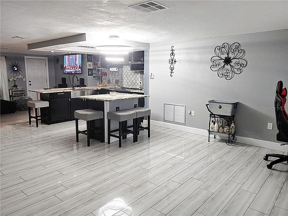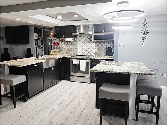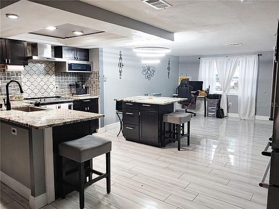 WOW! WOW! WOW! Florida at its finest! This is a beautiful 3 bedroom 2 bath home with a 2 car oversized garage. The home has been fully renovated, it shows just like a model home. The roof was installed in 2019, beautiful ceramic tile floors throughout the entire home. The updated kitchen includes granite counters, an Island, new cabinets, new backsplash, crown molding, ornamental lighting, a breakfast bar and stainless steel appliances. The home has an open concept with the kitchen overlooking the bright living room and family room. New windows throughout the home provide security and saving on energy costs! The master bedroom includes a walk in closet and custom shoe shelf along with a gorgeous bathroom with granite double sinks and a wonderful shower. The home is like buying new, it also has a new A/C and water heater. The privacy fenced back yard has a nice covered patio to enjoy your family BBQ's. The garage is a 2 car oversized garage with a workbench for the repairman. The driveway also accommodates 2 additional vehicles. This home has too many upgrades to mention. This home is located just off SR 54 for easy access to hospitals, buses, dining and shopping. It is also just a short drive to Tampa International and beautiful Florida beaches! This home will not last!! Schedule your appointment today.