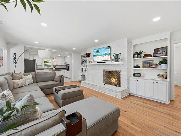 Fully finished basementBeautifully updated ranch-style homeString lightsExposed brick wallCustom mantelFront flex roomSpacious family room